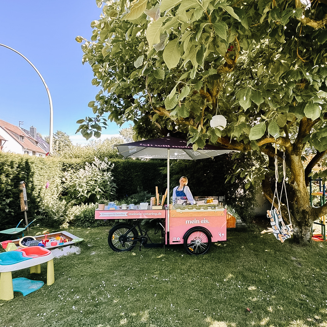 Unser Eisfahrrad Rosalie bringt nicht nur köstliches Eis, sondern auch das gewisse Etwas auf deine Geburtstagsfeier. Es rollt flexibel durch den Garten oder die Terrasse und verleiht deiner Feier einen charmanten Retro-Touch. Perfekt für alle, die ihren Gästen eine originelle und erfrischende Überraschung bieten wollen.