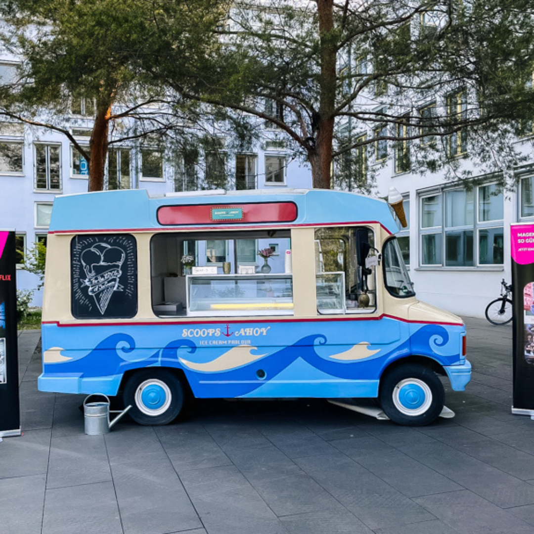 Der Eiswagen ist ein echtes Multitalent und lässt sich flexibel einsetzen – egal, ob du dein Event drinnen planst oder unter freiem Himmel feiern möchtest. Der Wagen kann sich problemlos jeder Location anpassen und bringt den perfekten Charme mit. Bei Sonnenschein wird der Eiswagen draußen schnell zum Publikumsmagneten und sorgt für echtes Sommerfeeling. Und sollte das Wetter mal nicht mitspielen? Kein Problem – auch indoor verwandelt der Eiswagen jeden Raum in eine kleine Eis-Oase.